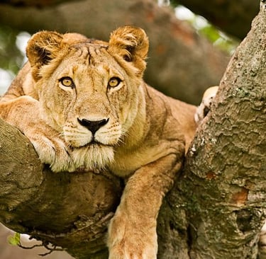 Known for its incredible biodiversity, Queen Elizabeth National Park is one of Uganda’s most visited safari destinations. It is famous for its rare tree-climbing lions in the Ishasha sector and boat safaris along the Kazinga Channel, where hippos and elephants gather along the shoreline.